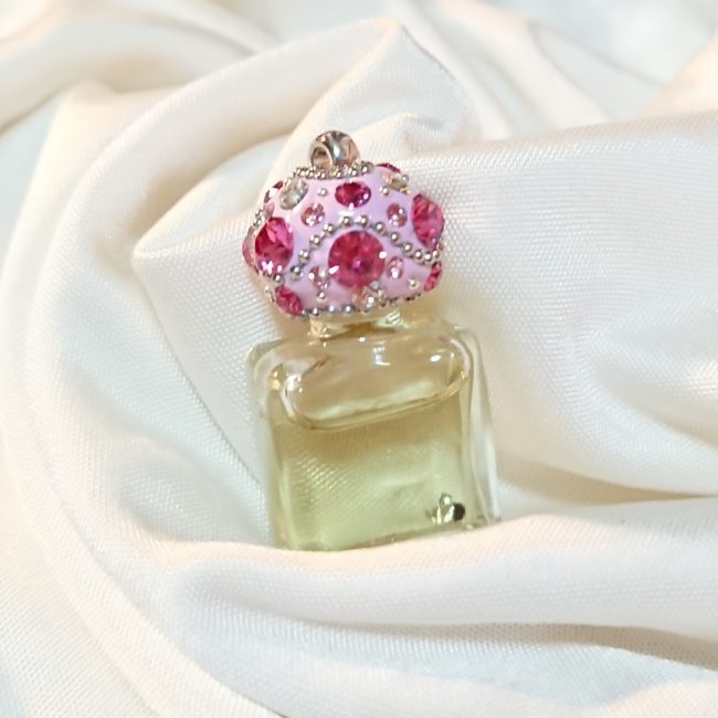 メモリーオイルのスワロフスキーデコレーション♥ 小瓶のキャップにデコレーション致します ¥3,000~(柄によって変わります。お問い合わせ下さい) お手持ちの小瓶を送って頂いて、デコレーション…