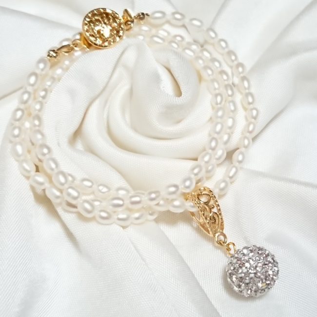 淡水パールのネックレス♥ スワロフスキーのボールトップでエレガントに仕上げました スワロフスキーボールは8mm程 ネックレスの長さは40cm ボールカラー:ライトサファイア • クリスタル 各…