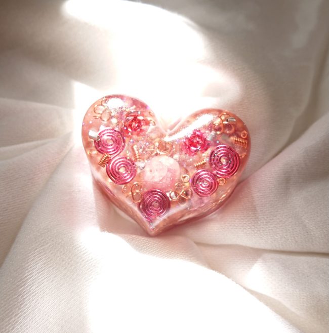 チャクラカラーオルゴナイト・ハート❤ 第四チャクラ・ピンク 体のチャクラ色のオルゴナイトを持つことによって、ピンポイントでのエネルギーの活性化をイメージして製作しています。 染料は使用せず、ジェムストーン…