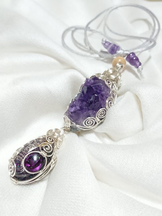 アメジスト原石ペンダント🎶 オルゴナイト, パワーストーンBy mari2022年1月29日アメジストの原石をオルゴナイトと合わせてペンダントにしました。 こちらはオーダーメイドになります。 「紫色のペンダント」と、オーダーを頂きまして紫のジェムストーンを探しに行ったところ、こちらの原石に出逢い、周囲を研磨して…