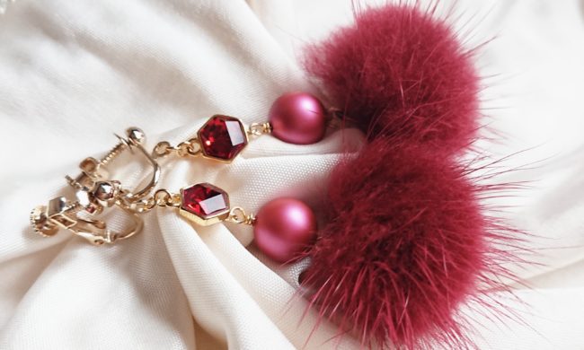 真っ赤なミンクボールイヤリング♬