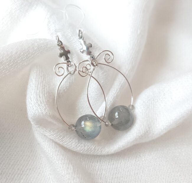 ラブラドライトの8㎜玉と2㎜のカットビーズのピアスです 宇宙の星をイメージして製作しました ラブラドライトは光の加減で様々な色の輝きを見せてくれます 内なる才能を目覚めさせ、勇気や希望を与えてくれるので夢や目標に向かって…